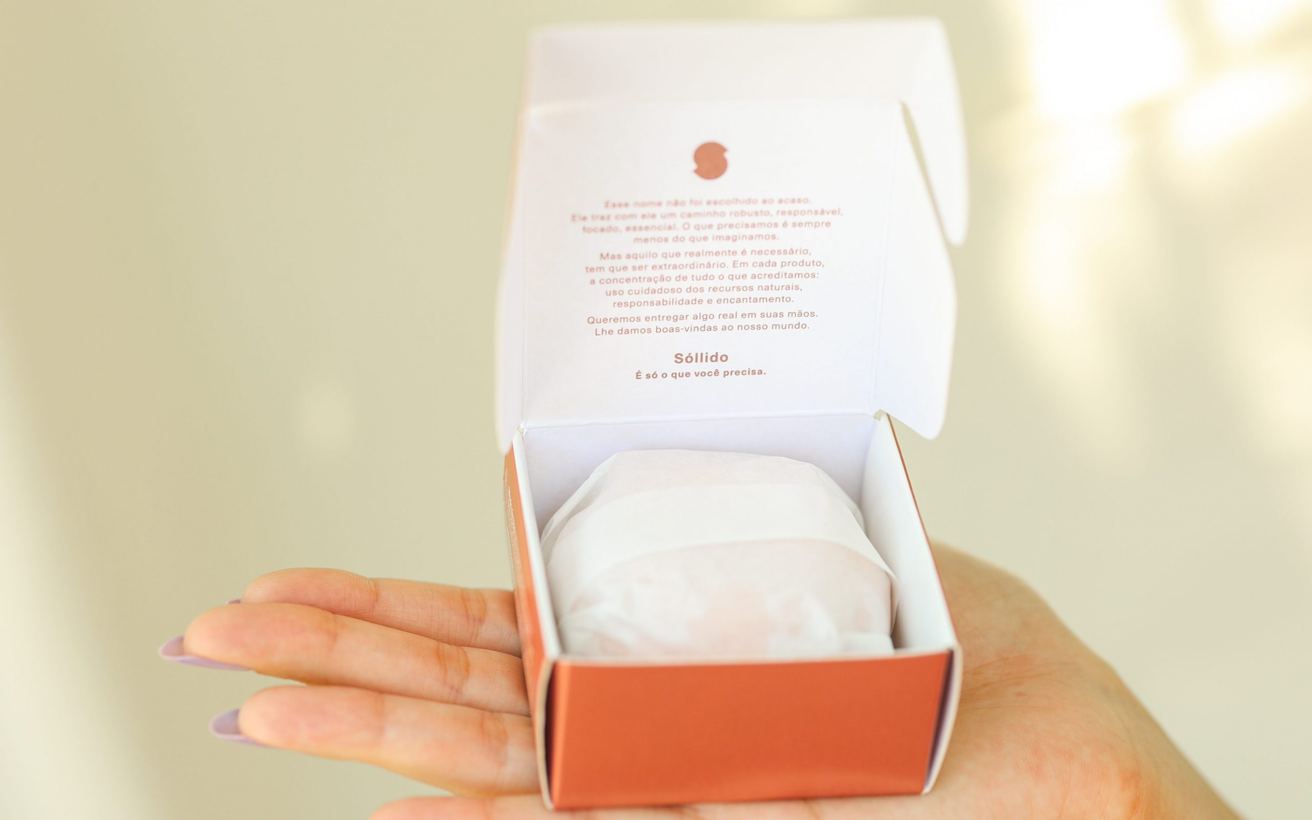 Optar por cosméticos SÓLLIDOS já pressupõe um produto livre de plástico e que gera menos resíduo. Por isso vamos falar das embalagens. Aquelas caixinhas coloridas bem bonitas, cheirosas (melhor parte!), de papel por dentro e por fora.  Além de fazer diferença no transporte e armazenamento do produto, a embalagem de papel, no descarte, pode ser dobrada e direcionada para a coleta seletiva da sua cidade.